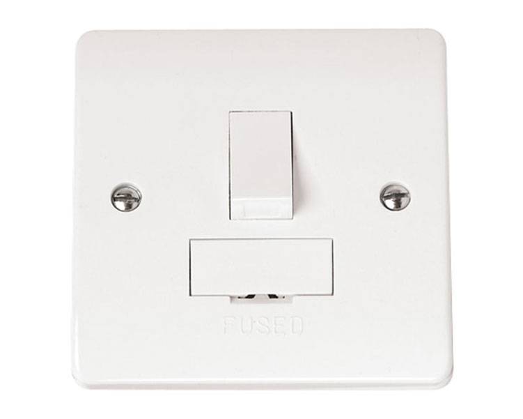 A fused connection unit (FCU) with a 13A fuse for connecting appliances like water heaters.